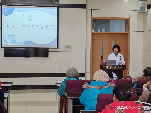 为切实守护离退休教职工的身体健康,厘清肺结节认知误区,提升呼吸道健康管理水平,1月9日中午,离退休工作处邀请校医院呼吸内科主治医师王晓辉,在一校区活动中心216会议室举办“科学认知,理性应对——肺结节健康宣教”专题讲座,为离退休教职工带来了一场专业实用的健康知识盛宴。