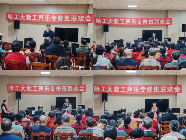演出环节精彩纷呈,掌声此起彼伏。陈方力等老师带来男声小合唱《红河谷》,熟悉的旋律唤起满室温情;刘桂华老师的女声独唱《你怎么说》,婉转的唱腔重温岁月里的温暖记忆;离退休工作处伊倩老师的钢琴练习曲,琴声悠扬,令人回味无穷;柴忠义老师的男声独唱《感恩》,字字句句饱含深情。互动游戏环节更是将现场氛围推向顶峰。王迎春、林均桥两位老师的男声独唱轮番登场,赢得阵阵喝彩;女声小合唱《珊瑚颂》旋律优美,韵味悠长;班委会老师们带来的小合唱《老师我想你》,真挚的情感打动了在场每一个人。联欢会在全体演员共同唱响的《哈工大之歌》中拉下帷幕。歌声里满是对学校未来蓬勃发展的美好祝愿,对祖国繁荣昌盛的深切期盼。